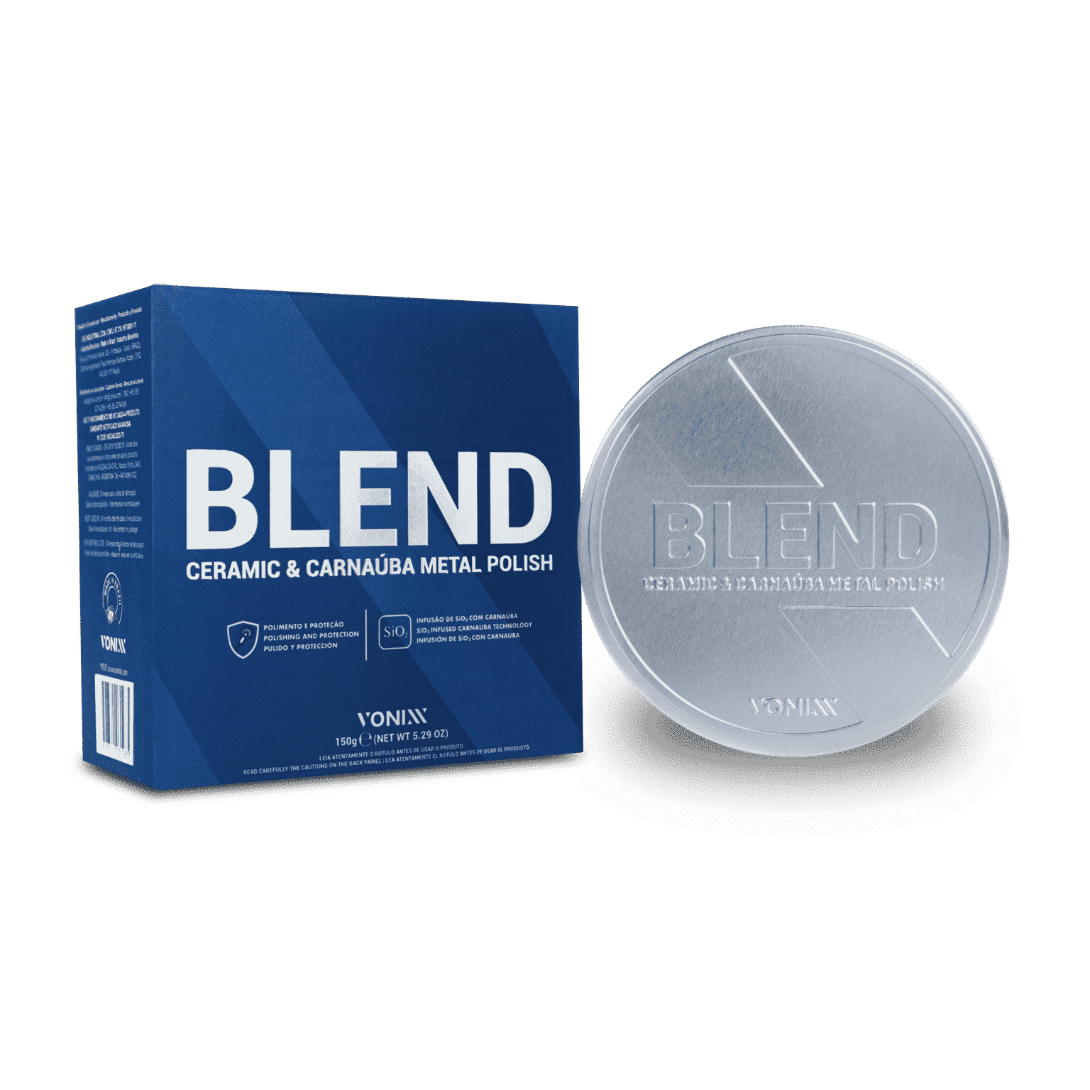 Blend Ceramic & Carnaúba Metal Polish é um produto com formulação exclusiva, que une abrasivos especiais, carnaúba pura e SiO2, resultando em um polidor de metais inovador. Promove na peça polida muito brilho e proteção prolongada. O produto pode ser usado com máquina ou manualmente em superfícies como alumínio, ferro, inox, cobre, latão, cromo e diversos outros tipos de metais.