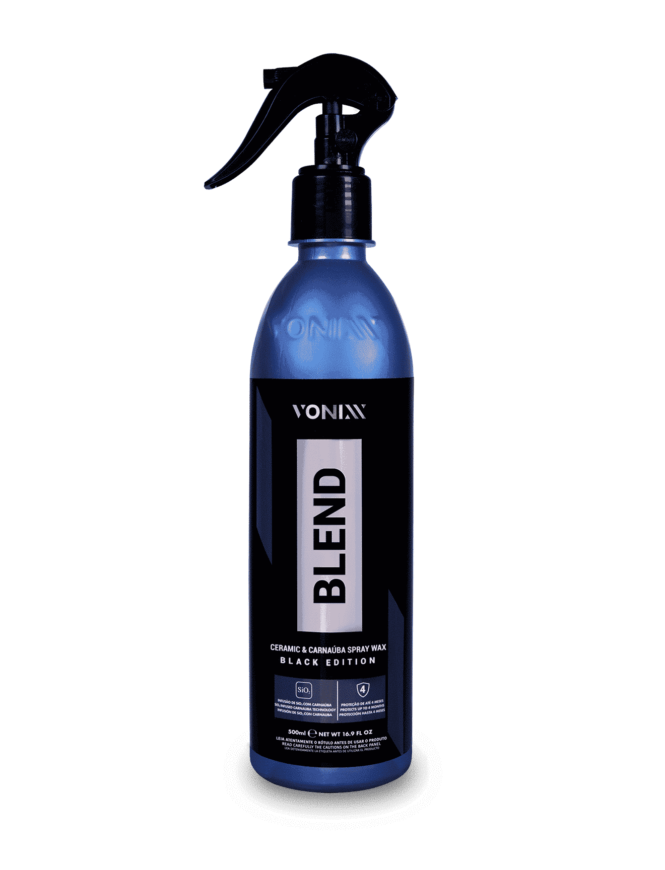 Blend Ceramic & Carnaúba Spray Wax Black Edition é uma cera híbrida, composta por SiO2 e pela mais pura carnaúba tipo 1 que protege a superfície veicular por até quatro meses, em especial as pinturas escuras. O produto promove a resistência cerâmica, brilho quente da carnaúba e hidrorrepelência.