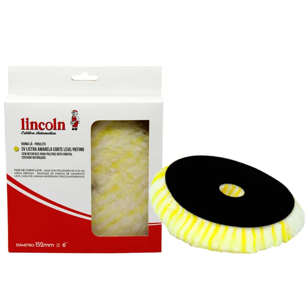 A Boina de Lã Pirulito Com Interface Listra Amarela foi desenvolvida para a etapa de refino, com uso de produtos de alta ou média abrasão. Remove marcas de lixamento leve, casca de laranja moderada e riscos moderados. COM INTERFACE, Deve ser utilizada exclusivamente na politriz Rotativa e nunca na roto orbital. Seu conceito é moderno, eficiente e econômico sem perder a máxima qualidade, que é a característica dos produtos LINCOLN POLIDORES. As boinas super velcro foram criadas para atender as necessidades dos profissionais que utilizam politrizes rotativas. Essa pele é desenvolvida e fabricada pela própria LINCOLN. Tem como característica o poder de corte leve com refino. remove os problemas como riscos moderados, marcas de lixas 2000 grits, cascada de laranja moderada e riscos leves. A interface de espuma teve como base as interfaces utilizadas para lixamento com maquina. Essa interface especialmente desenvolvida para boina, amortece todo o impacto da relação boina/peça e reação peça/boina. Esse amortecimento evita a formação de novas marcas. Proporciona maior conforto ao operador e durabilidade da pele de lã.