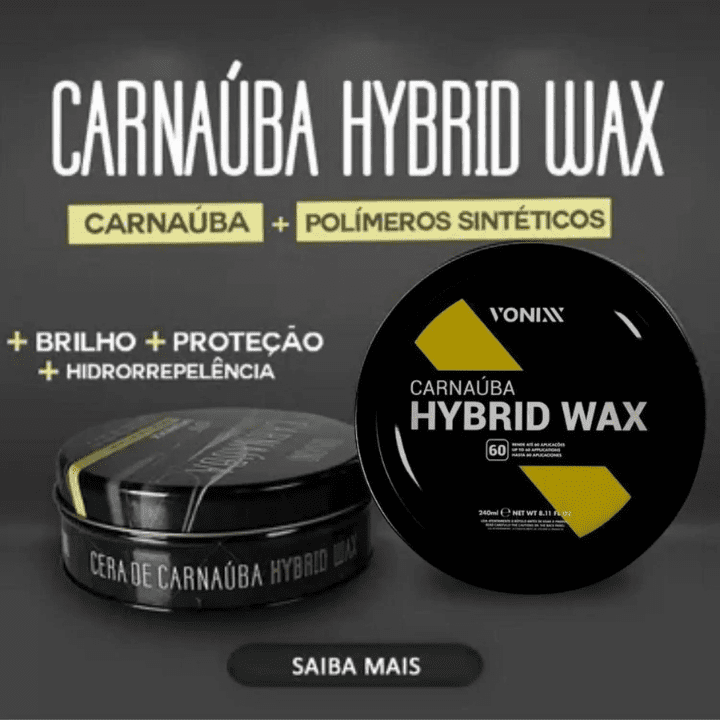 Cera sintética de carnaúba Carnaúba Hybrid Wax é uma cera desenvolvida com a mais pura carnaúba cearense e polímeros de última geração, que protegem e dão brilho por um longo período