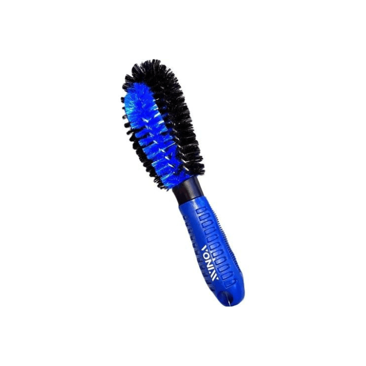 Cerdas fixas em arame que promovem resistência e flexibilidade, permitindo adaptação a diversos formatos, facilitando a limpeza em áreas de difícil acesso.