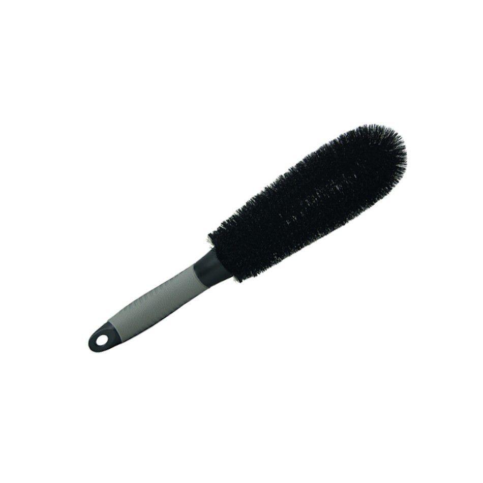 Escova para limpeza de raio de roda, com cabo emborrachado e cerdas de nylon de alta resistência.