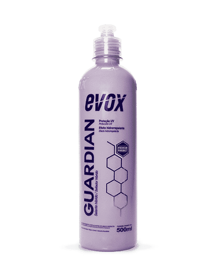 Guardian é selante híbrido que contém polímeros e ceras sintéticas de alta resistência que oferecem proteção e poder hidrofóbico à pintura do veículo. Por conter nano abrasivos, auxilia na eliminação de pequenas imperfeições e promove brilho molhado e profundo na pintura. Promove proteção UV.