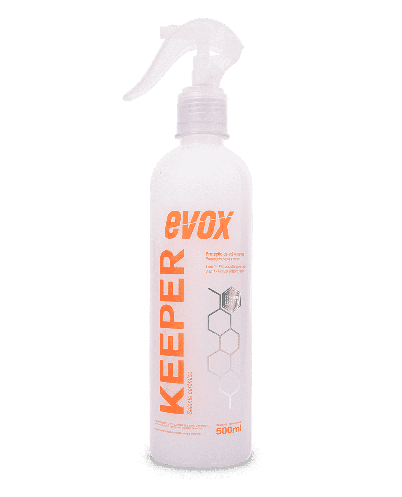 KEEPER é um selante cerâmico spray usado para a manutenção de partes vitrificadas como pintura, plásticos e faróis prologando a vida útil do vitrificador ou como proteção única. O produto promove hidrorrepelência, toque aveludado e reduz coeficiente de atrito, diminuindo as chances de riscos.