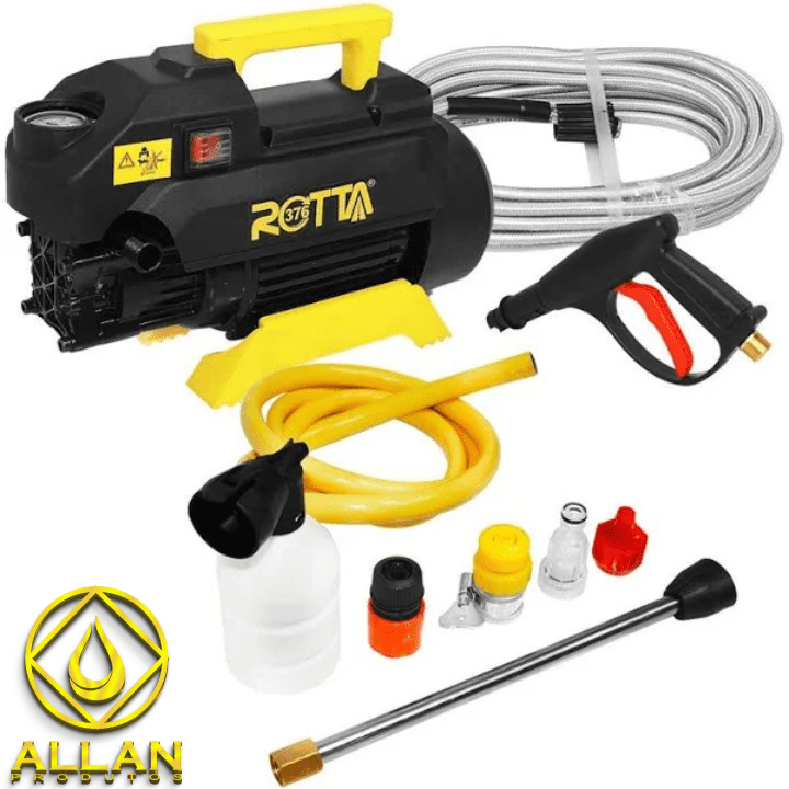 A Rotta 376 traz mais uma novidade ao Mercado Nacional, a Lavadora Alta Pressão Portátil Rotta 376, possui motor de indução com potencia de 650w gerando uma pressão de 25Map que torna a maquina robusta, dando uma grande vazão e força no jato de agua, com um fluxo de 5 litros/minuto. Também acompanha o Kit Limpeza, com mangueiras, conectores de mangueira, shampoozeira.