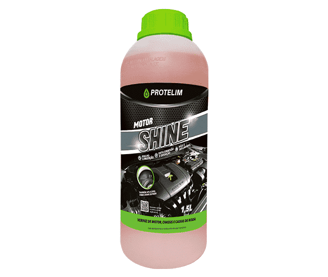 MOTOR SHINE é um produto especialmente desenvolvido para dar proteção, brilho e renovar as partes metálicas, plásticas, em borrachas e partes pintadas do cofre do motor, chassi e caixas de roda. Produzido com matérias-primas de ponta, este excelente verniz para motor automotivo aguenta altíssimas temperaturas e promove um filme que protege, abrilhanta e proporciona um acabamento impecável, evitando possíveis oxidações.