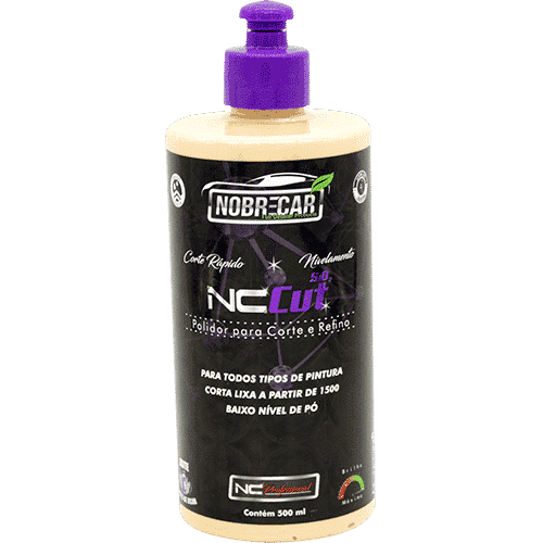NC CUT 500mL: Passo 01 Corte/ Refino – Produto a base de água, de ótimo rendimento, profundidade de brilho em um processo rápido. Proposta inovadora de corte e refino com único produto, também pode ser usado em pinturas laqueadas e náuticas. Contém SiO2.