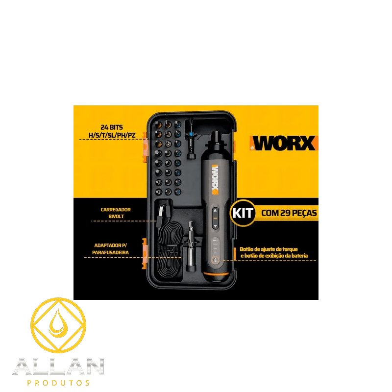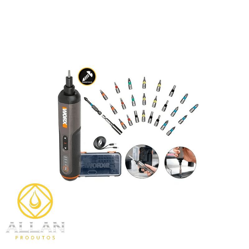 Parafusadeira Tipo Caneta Bateria WORX 4V WX240 + 24 Bits + Maleta