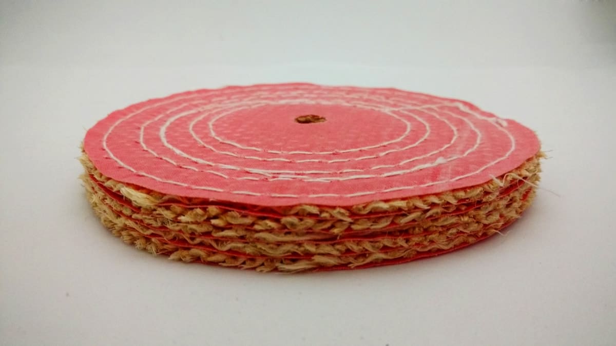 Confeccionada em camadas sobrepostas de telas de sisal e tecido de algodão costurado cru ou resinado, sem centro de papelão, permite uma extensa variedade de combinações para melhor atender as necessidades específicas de cada polimento.