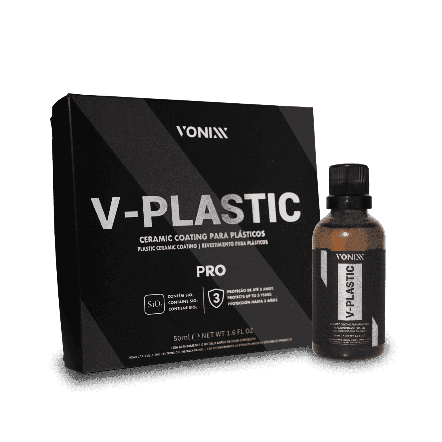 V-Plastic Pro é um coating semipermanente, desenvolvido exclusivamente para tratamento de superfícies plástica, a fim de renovar e restaurar plástico por um período de até três anos. Promove resistência e proteção UV. Também pode ser utilizado em plástico novos, para evitar a degradação do material e prolongar em até três vezes sua vida útil. V-Plastic Pro pode ser aplicado em para-choques, painéis e laterais de portas.