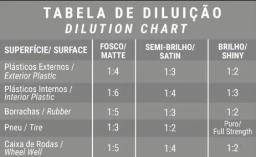Plásticos Externos: 1:4 – Fosco / 1:3 – Semi-Brilho / 1:2 – Brilho